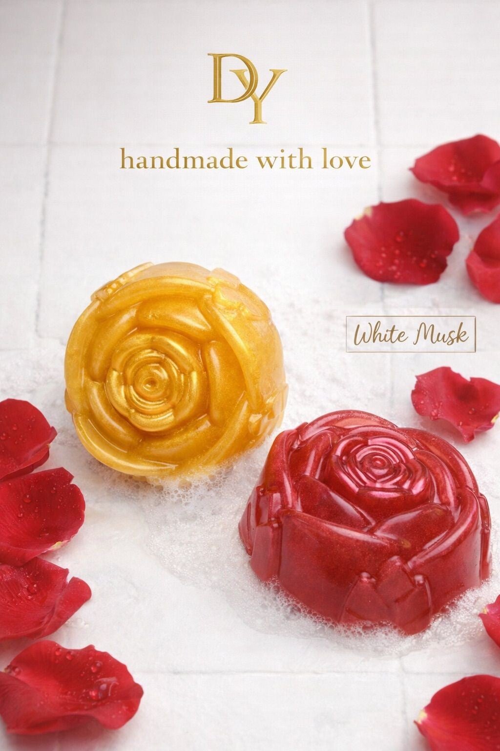 Jabón artesanal con base de Argan, Aceite de White Musk y fragancia de Jasmín . Aceite corporal para limpiar e hidratar la piel. 2 unidades por orden.